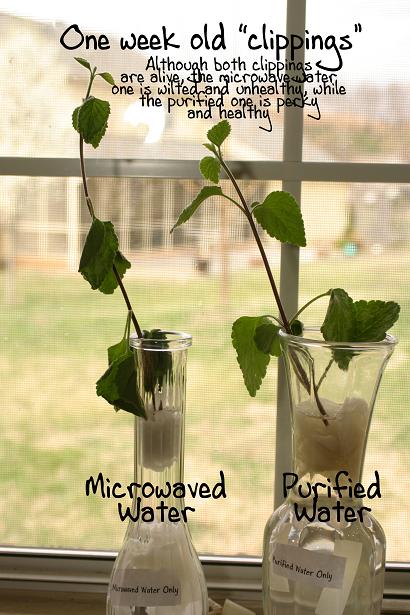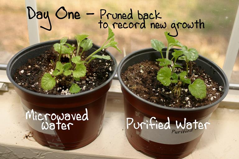 Abbiamo ricevuto numerosi commenti su questa ricerca, alcuni hanno chiesto quale fosse il materiale del contenitore dove abbiamo portato ad ebollizione l’acqua con il microonde. Alcuni hanno pensato che ci potesse essere stata una dispersione dal contenitore se questo fosse stato di plastica. Effettivamente il contenitore usato era di plastica, di conseguenza la dispersione di tossine nell’acqua è una possibilità da considerare. Consideriamo anche che questo non era un esperimento a doppio cieco, e mia nipote sapeva benissimo quale acqua usava mentre annaffiava le due piante. Inoltre, nonostante molti scienziati negherebbero la possibilità, mia nipote voleva che la piantina annaffiata con l’acqua alle microonde non sopravvivesse, ed è possibile che il suo pensiero verso ciascuna pianta abbia condizionato la loro crescita.